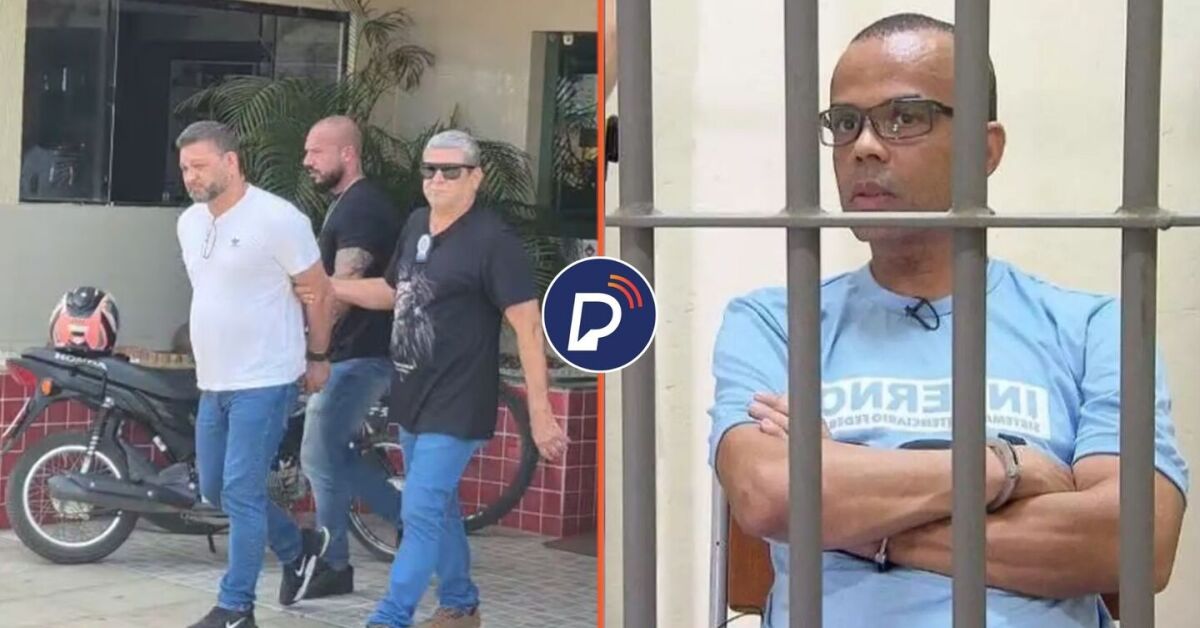 Marinilson Carneiro da Silva, sendo detido pela Polícia e Fernandinho Beira-Mar, na prisão. Fotos: PCERJ/Reprodução e TV Record/Reprodução. Arte: Portal de Prefeitura