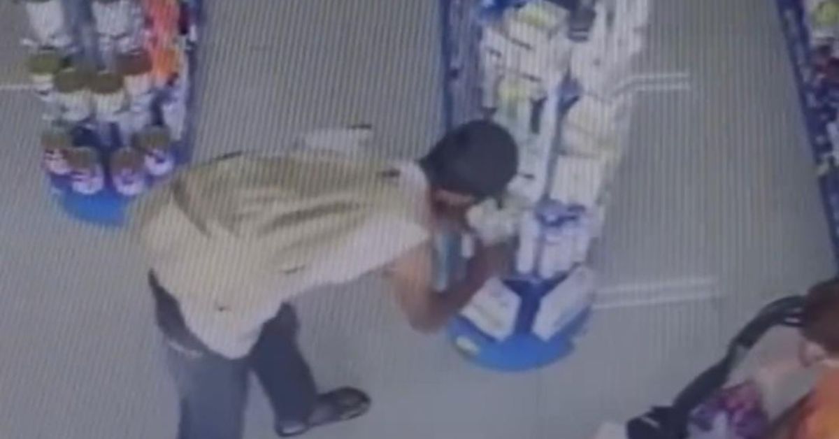 Homem furtando desodorantes em farmácia. Foto: Reprodução