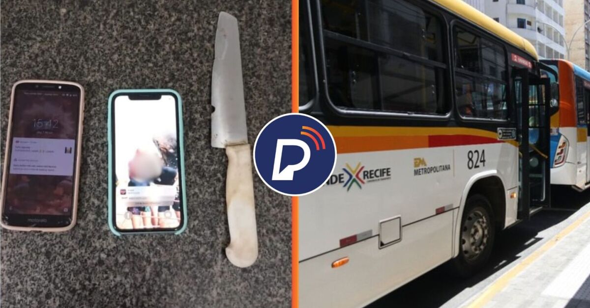 Foragido é preso dentro de ônibus em abordagem da PM, no Recife, com faca e celulares roubados Imagem: Divulgação/PM