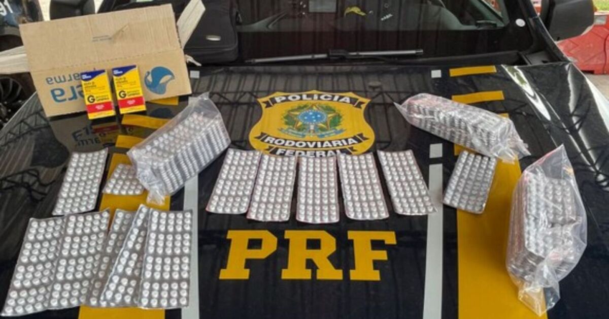 Homem é preso com três mil comprimidos contendo substâncias ilegais pela PRF. Foto: Diculgação/PRF