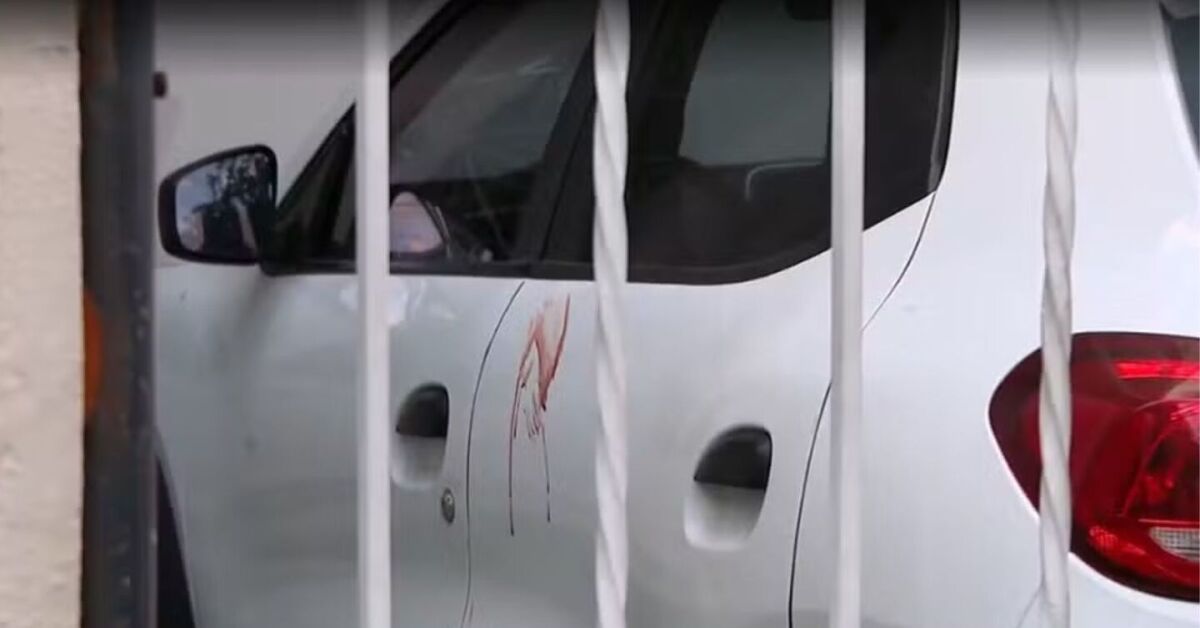 Carro da vítima com manchado de sangue Foto: Reprodução/ TV Globo