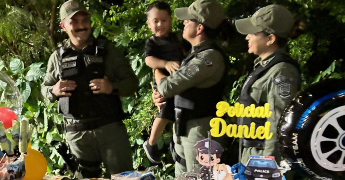 É comum que crianças se encantem pela profissão e por vezes os pais atendem ao pedido de seus filhos e fazem o tema da festa de aniversário relacionado a Polícia Militar.