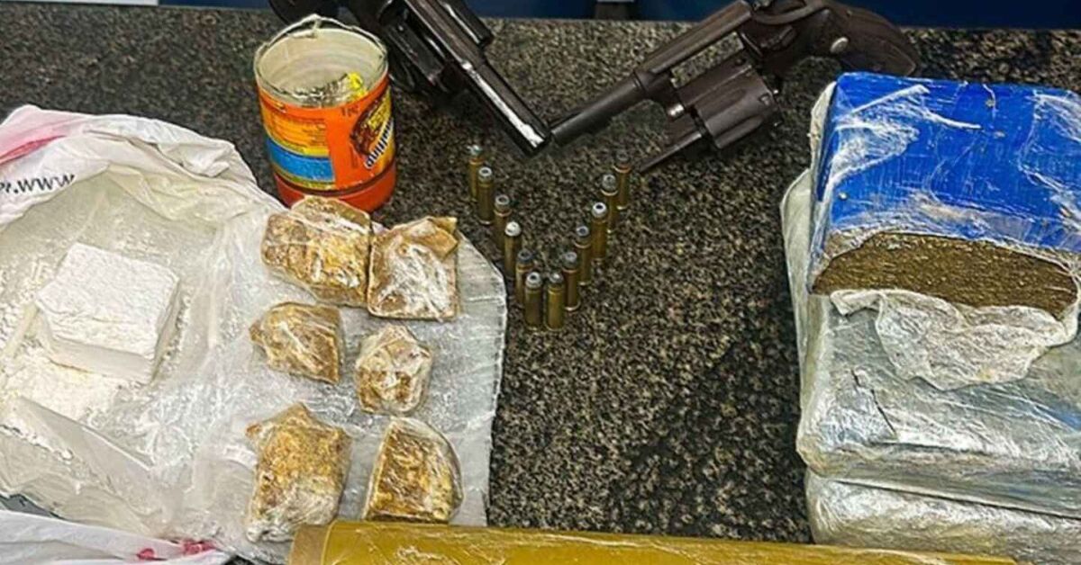 Em continuidade à operação, a PM localizou dois revólveres calibre 38, munidos com 12 balas do tipo ponta oca revestidas com veneno, além de 2,480kg de maconha, 75g de cocaína e 50g de crack.