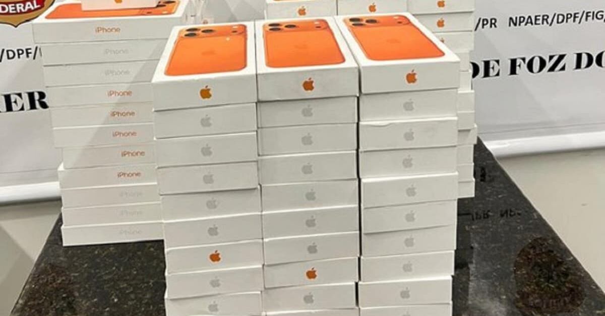 Dentro das malas foram encontrados aproximadamente 100 celulares da marca Apple, modelo iPhone 17 ou 17 Pro Max, todos sem qualquer documentação fiscal ou nota que comprovasse a origem lícita da carga.