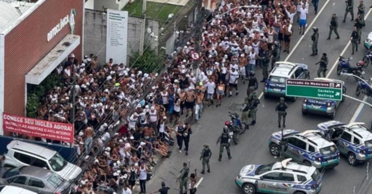 O confronto se iniciou nas imediações da Rua Real da Torre, na Madalena, zona oeste do Recife. A briga resultou em danos a uma viatura da PM, que foi atingida por objetos e fogos de artifício.