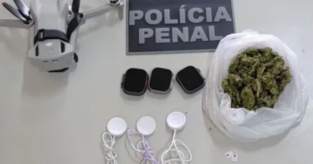 De acordo com a Secretaria de Administração Penitenciária e Ressocialização (Seap), o drone transportava um pacote contendo 36 gramas de uma substância semelhante à maconha, além de três smartwatches, três carregadores e dois chips de celular presos à sua estrutura.