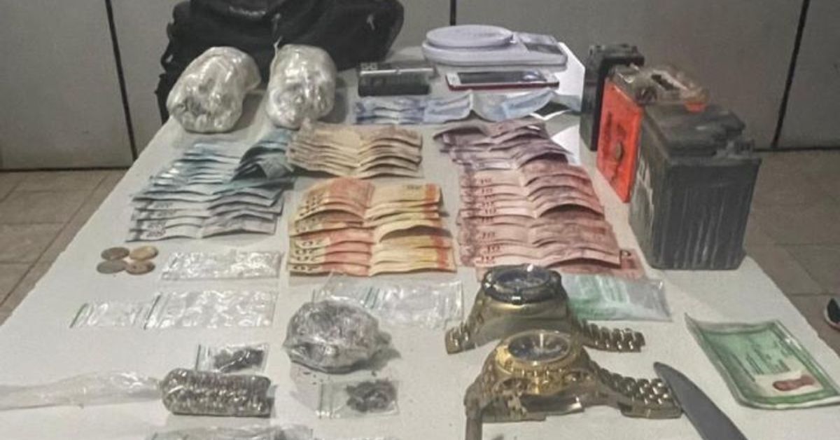 Drogas e dinheiro apreendidos pela Polícia Militar Foto: Divulgação