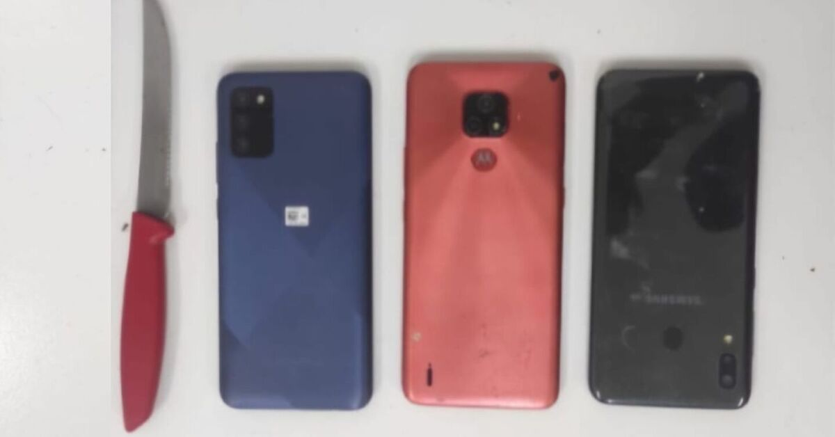Durante buscas na região, as vítimas identificaram os suspeitos em via pública. Na abordagem, os policiais encontraram o homem com uma faca e dois celulares, enquanto a mulher portava uma bolsa com outro aparelho.
