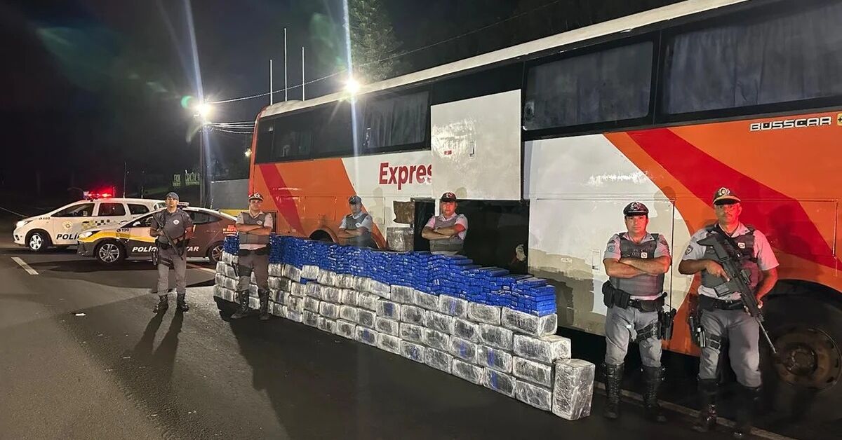 Um ônibus do Paraguai transportando 40 passageiros e uma tonelada e meia de maconha em um fundo falso no bagageiro foi interceptado pela polícia, na madrugada desta segunda-feira, 15 de julho, na rodovia Raposo Tavares (SP-270), em Presidente Prudente, no oeste paulista.