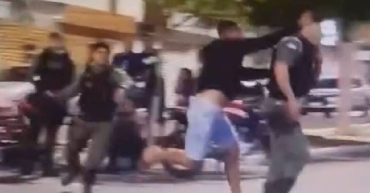 Momento em que Policial Militar é agredido. Foto: Reprodução/ Redes Sociais