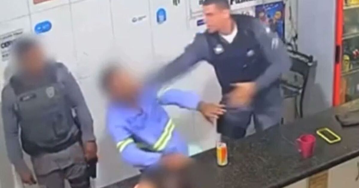 No registro, dois policiais militares entram no bar e cumprimentam os presentes. Em seguida, um dos agentes se dirige ao homem, que estava sentado e vestia uma camisa azul. Após ficar ao lado dele, o policial inicia uma fala direta, em tom de repreensão, dizendo ao homem para prestar atenção no que seria dito.
