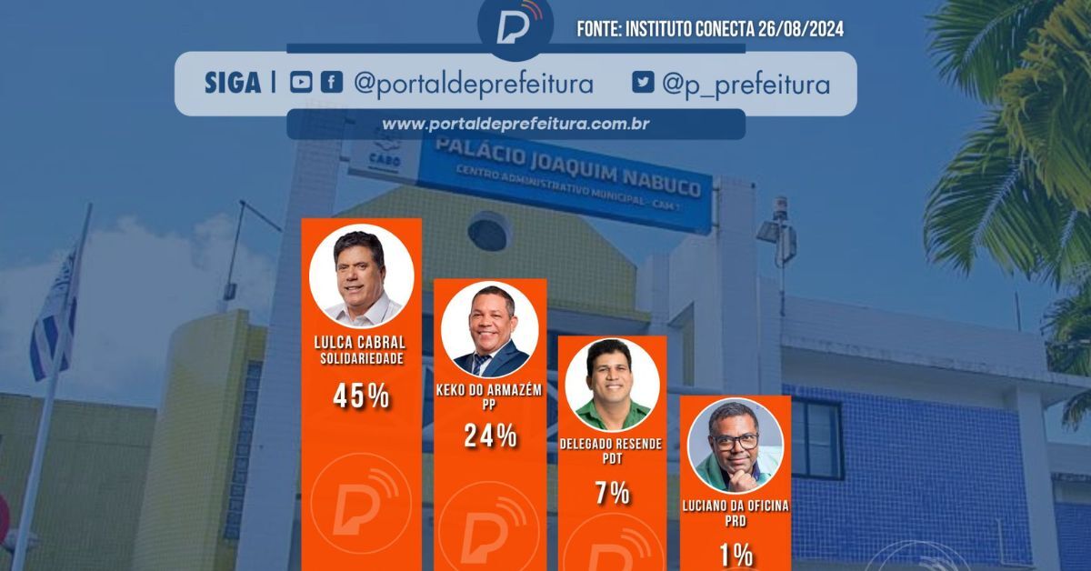 Uma pesquisa divulgada nesta segunda-feira, 26 de agosto, pelo Instituto Conecta, a pedido do Blog Ponto de Vista, indica que Lula Cabral (Solidariedade) está à frente na corrida pela Prefeitura do Cabo de Santo Agostinho.
