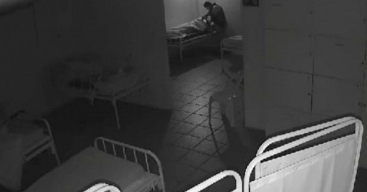 O homem se aproxima do local onde a mulher estava deitada e passa a mão em seu corpo. Uma câmera registrou o momento em que o crime aconteceu.