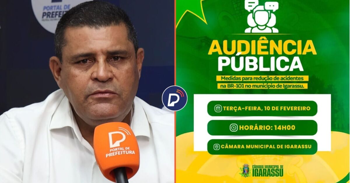 Presidente da Câmara de Igarassu, vereador Maguila, convida população para participar de audiência pública nesta terça (10), sobre acidentes de trânsito na BR 101 Foto: Arte/Portal de Prefeitura