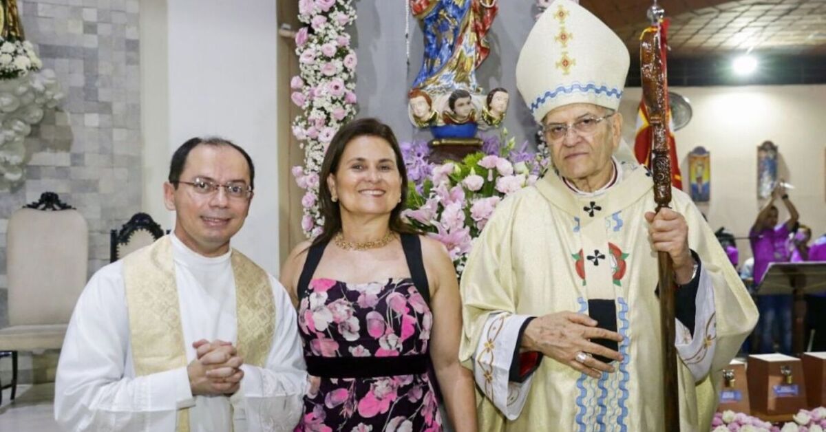 Prefeita de Igarassu, Elcione Ramos com o Padre Josivan Bezerra e Arcebispo Dom Fernando Saburido. Foto: Divulgação