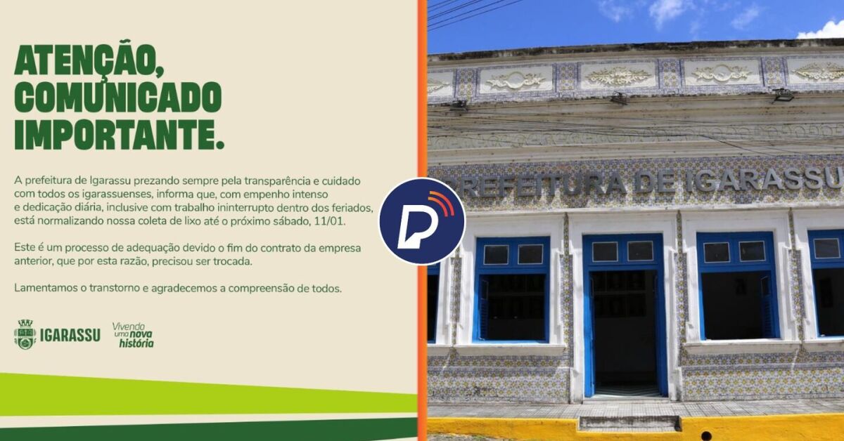 Prefeitura de IGARASSU esclarece sobre coleta de lixo e garante normalizar situação até sábado (11) Imagem: Arte/Portal de Prefeitura