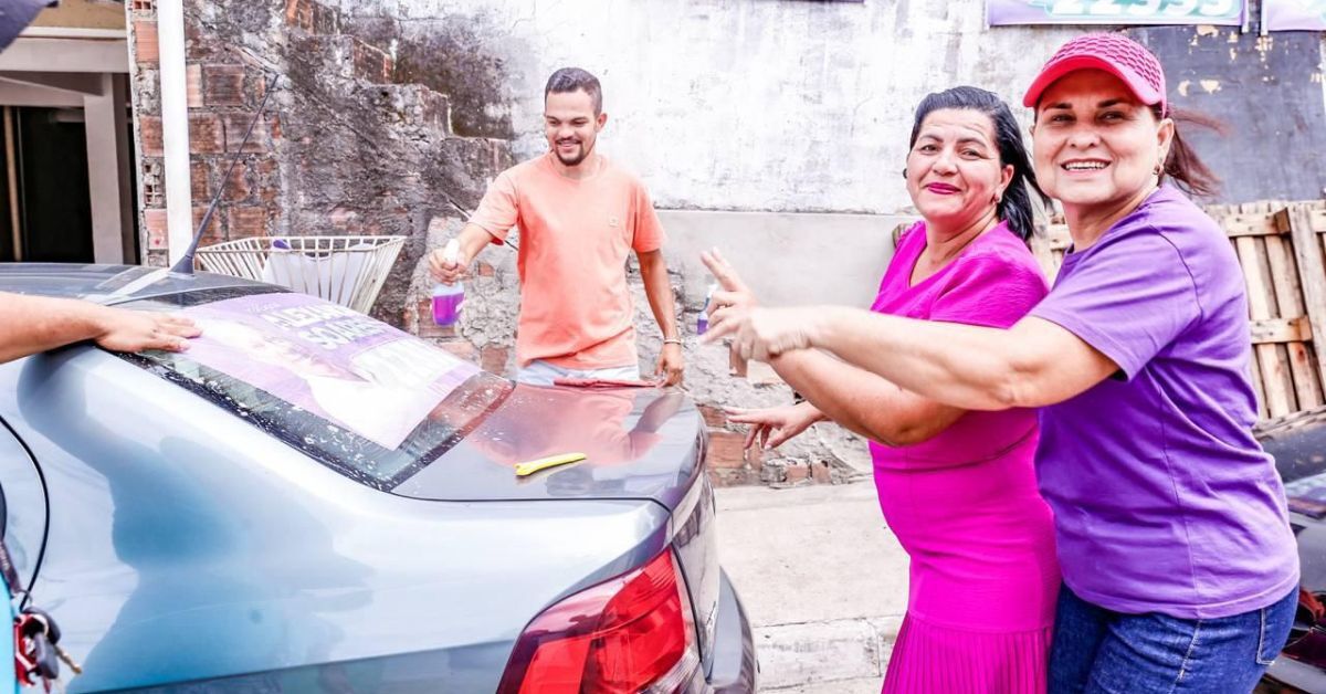 No último sábado, a prefeita realizou campanha nas ruas da cidade promovendo adesivaço de veículos com a Liga Jovem 45.