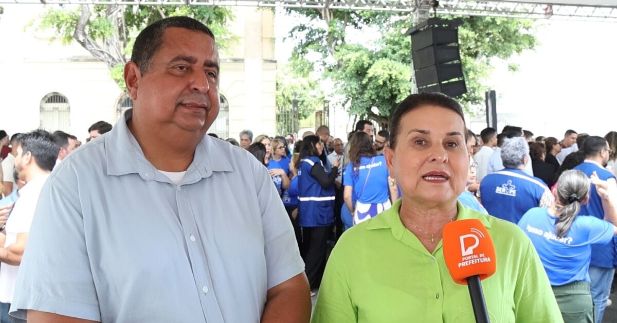 Prefeita de Igarassu, Elcione Ramos ao lado do seu vice. Foto: Beto Dantas/Portal de Prefeitura.