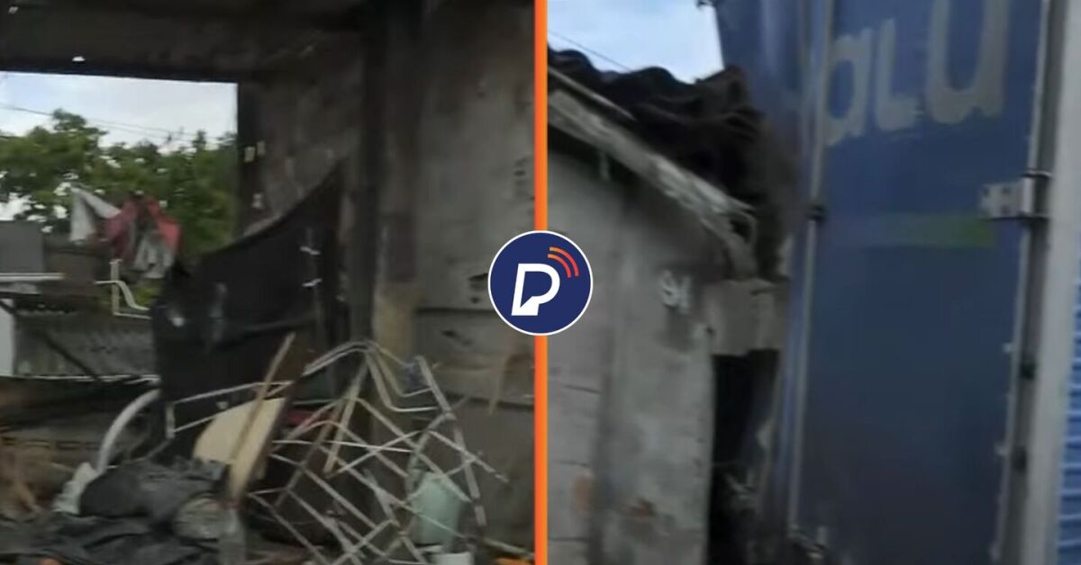 O caminhão iniciou a subida, mas não conseguiu completar o trajeto. O solo molhado fez com que o veículo derrapasse e descesse de ré sem controle. O impacto contra a residência foi forte, destruindo parte da estrutura e comprometendo a segurança da construção.