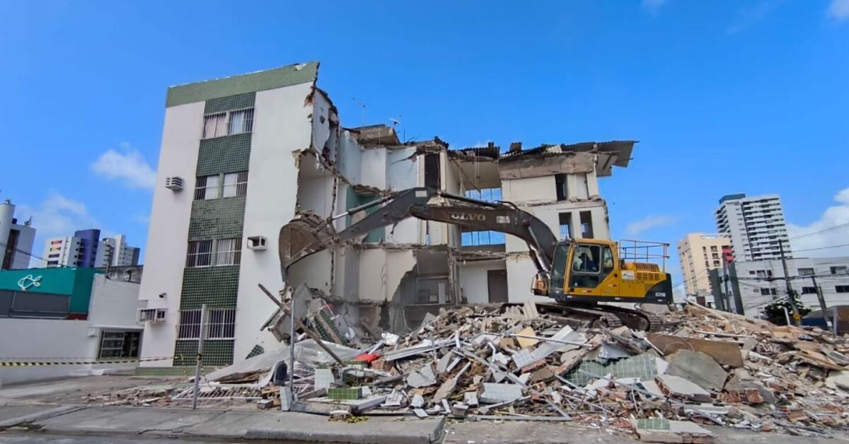 A demolição do edifício Kátia Melo, em Piedade, que desabou na última terça-feira, 6 de maio, começou neste sábado, 10 de maio. A empresa contratada pela Prefeitura do Jaboatão dos Guararapes começou a executar o serviço no início da manhã. A previsão é que o trabalho seja concluído até a próxima segunda-feira, 12 de maio. (Veja vídeo abaixo)