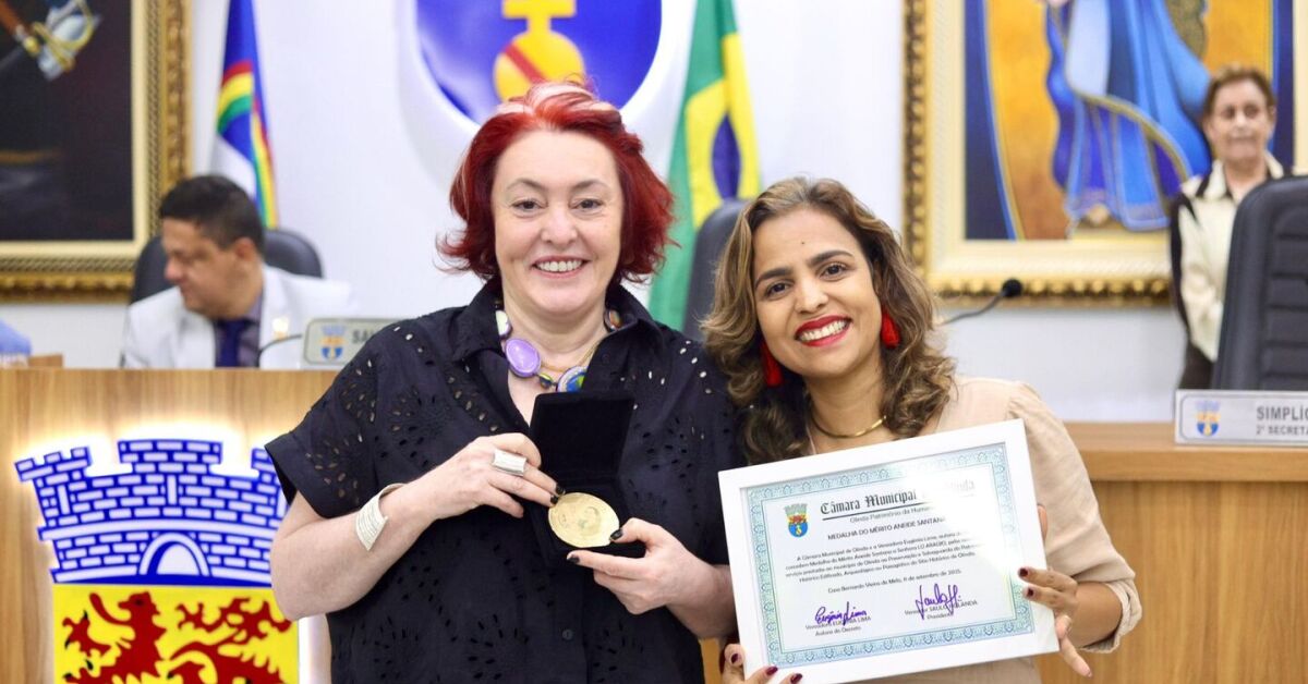 A Câmara Municipal de Olinda concedeu, na quinta-feira, 11 de setembro, a entrega da Medalha Aneide Santana à produtora cultural Lu Araújo. A homenagem foi de iniciativa da vereadora Eugênia Lima (PT) e reconhece a contribuição da fundadora e CEO do Mimo Festival para a preservação da memória, da cultura e do patrimônio do Sítio Histórico de Olinda.