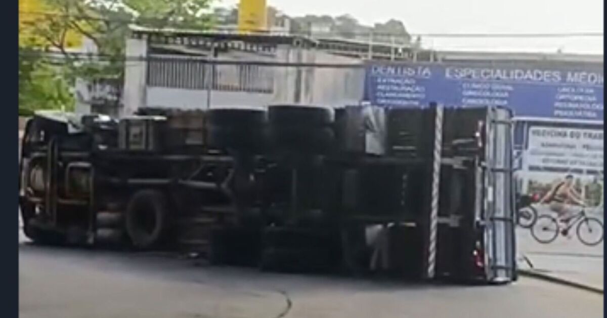 Caminhão tombado em Olinda. (Foto: Reprodução/ Redes Sociais