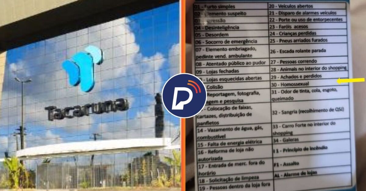 Nos 37 códigos de ocorrências da equipe de segurança do shopping Tacaruna, em Olinda, há o código “30 – homossexual”, entre os códigos 29 de “achados e perdidos” e 31 de “odor de tinta, cola, esgoto, queimado”. revela reportagem do site Marco Zero.