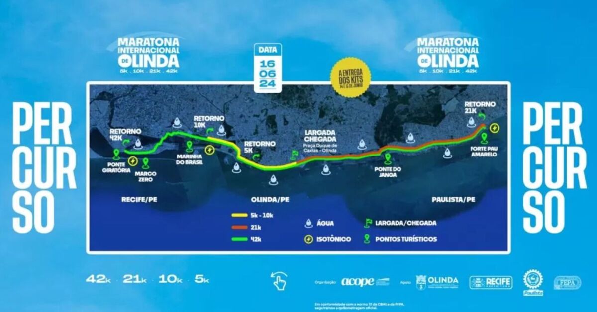 O evento ainda vai oferecer as modalidades 5 e 10 km e meia maratona (21 km). Corrida terá estrutura montada nas cidades de Olinda, Recife e Paulista.