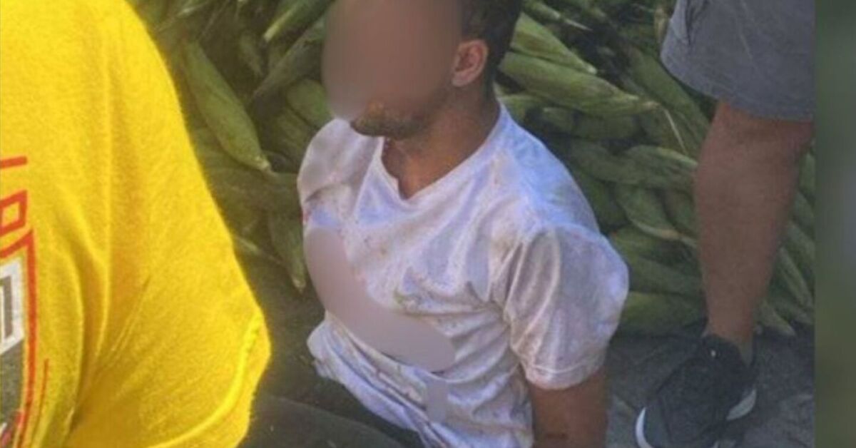 Ele apresentava hematomas no rosto, especialmente no olho e na boca. Durante o interrogatório, o suspeito preferiu permanecer em silêncio. A arma utilizada, uma faca do tipo peixeira, foi apreendida.