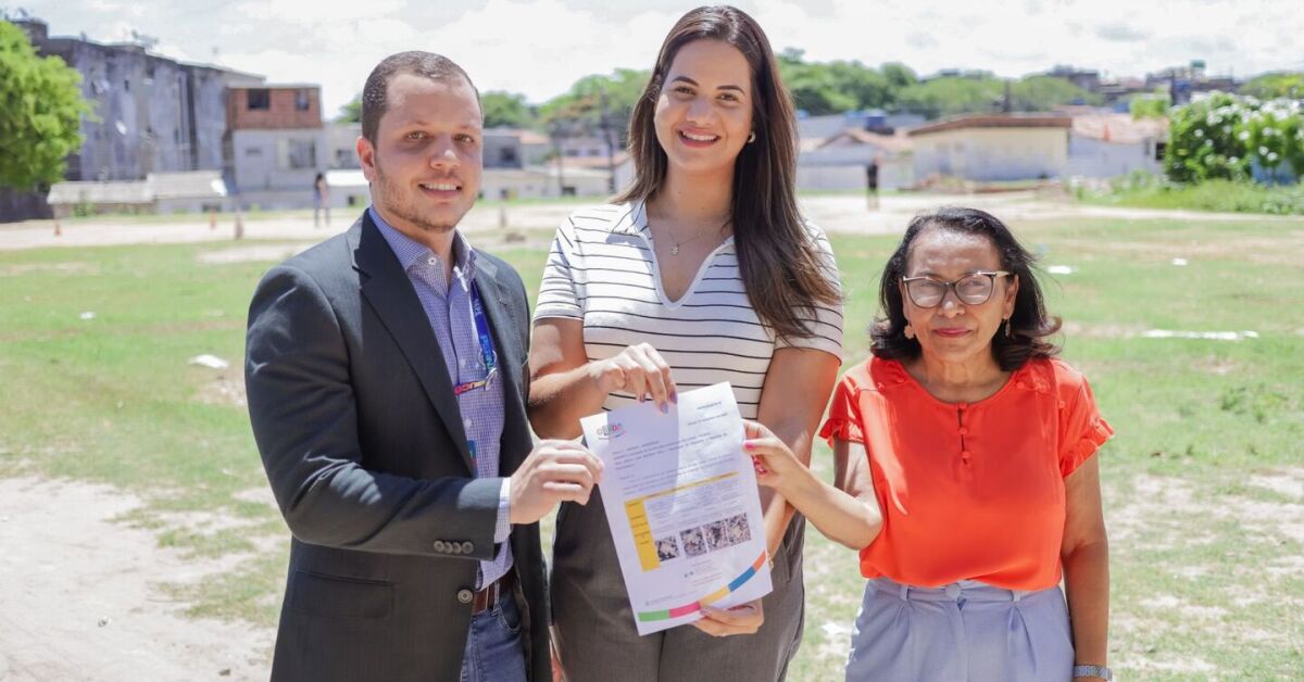 Prefeita de Olinda, Mirella Almeida, visita locais para construir creches. Foto: Divulgação