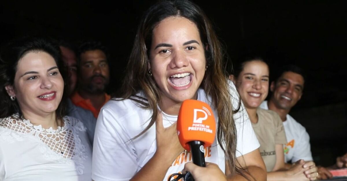 Mirella Almeida comemorando vitória em Olinda. Foto: Bruno Vila Nova/Portal de Prefeitura