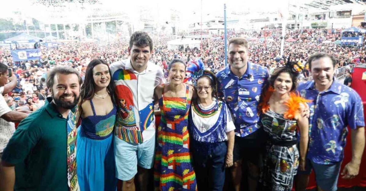 Raquel Lyra e aliados no carnaval de Paudalho. (Foto: Hesíodo Góes/Secom)