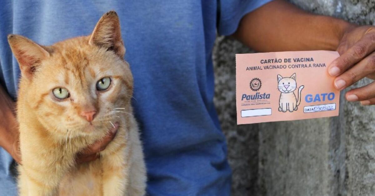Gato ao lado de um cartão de vacina. Foto: Divulgação