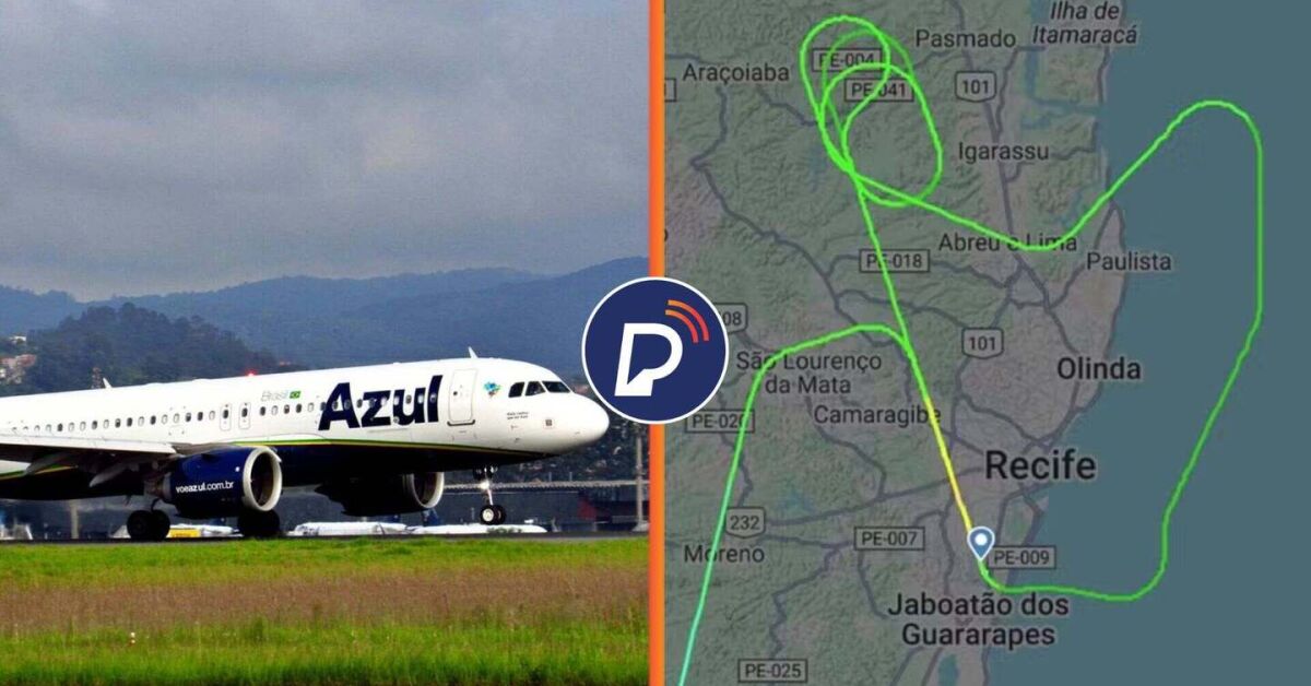 Avião da Azul voa em círculos no Recife. Fotos: Divulgação/ Azul Linhas Aéreas e Reprodução/ Flight Radar