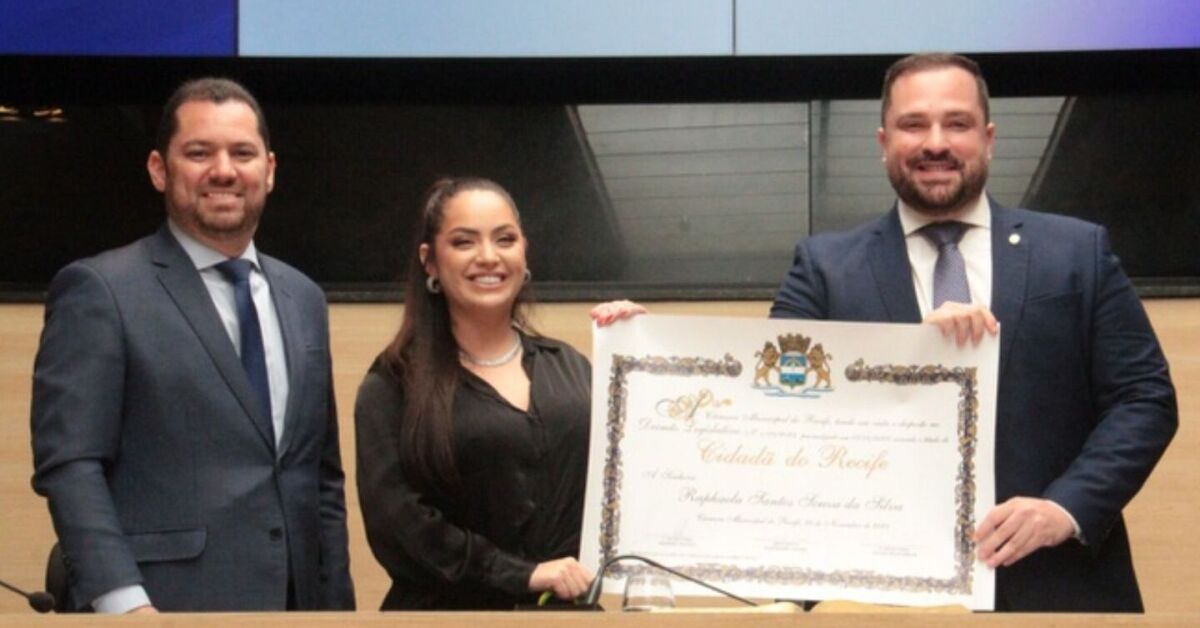 Cantora de BREGA, Raphaela Santos, recebe título de cidadão do RECIFE em sessão na Câmara Foto: Divulgação/Câmara do Recife