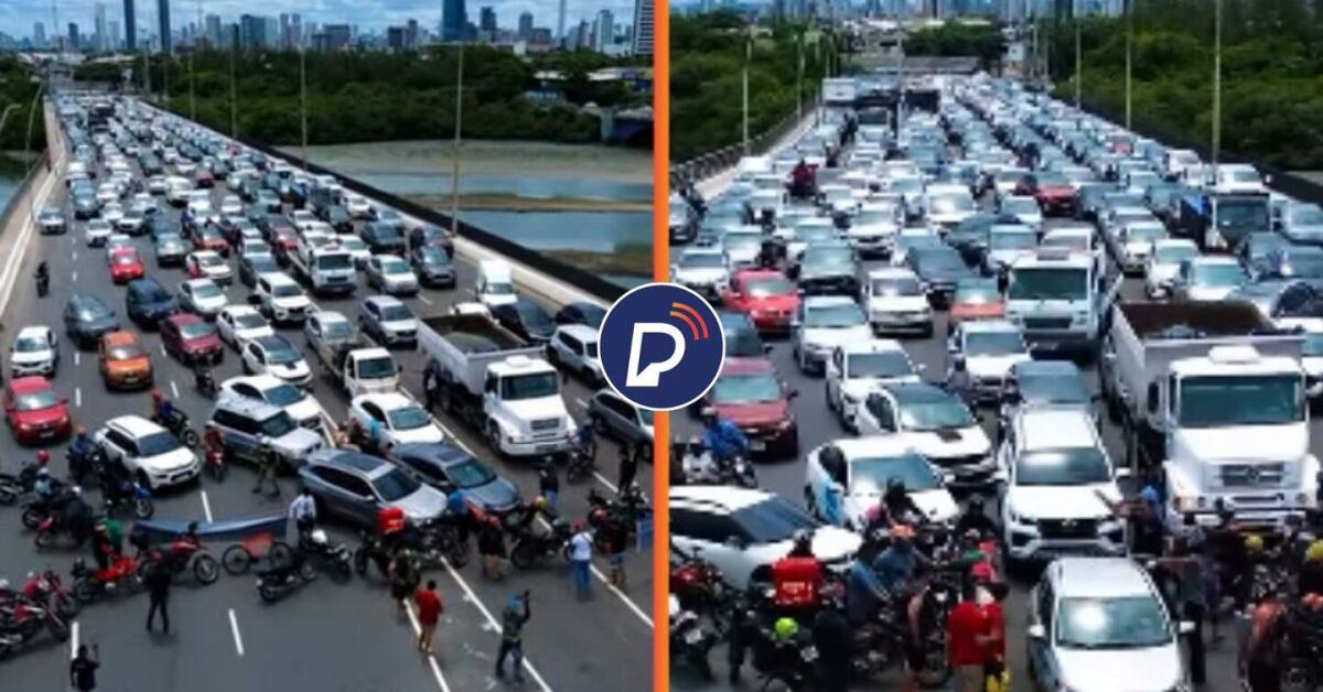 Entregadores por aplicativo bloqueiam Ponte do Pina em protesto. Foto: Reprodução