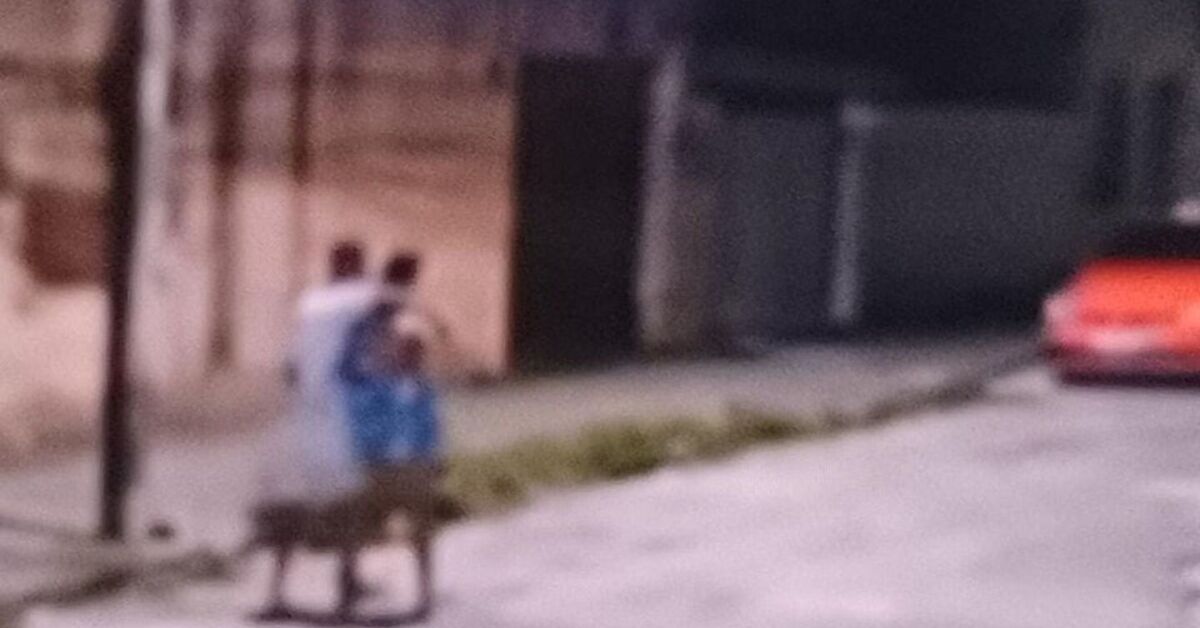 O momento do crime foi flagrado por uma câmera de segurança de uma das residências da rua, que mostra a vítima e a esposa sendo surpreendidos por dois homens que estavam em uma moto.