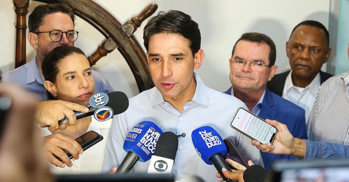 Ministro Sílvio Costa Filho em entrevista coletiva ao lado da governadora de Pernambuco, Raquel Lyra Foto: Wesley D'Almeida/Divulgação