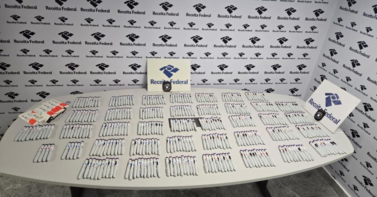 A Inspetoria da Receita Federal no Aeroporto Internacional do Recife realizou, na madrugada de sábado, 13 de abril, a retenção de 389 canetas do medicamento Mounjaro, avaliadas em aproximadamente R$ 1.000.000,00 (um milhão de reais).