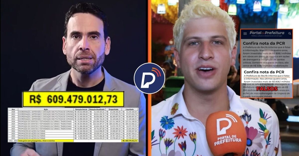 “A prefeitura do recife diz que: nos últimos quatro anos, foram investidos mais de R$ 808,1 milhões em obras em áreas de morro e em ações de drenagem e mitigação de pontos críticos. Se você entrar agora no portal da transparência, você não vai encontrar esse dado. Sabe porquê? porque este número apresentado na nota não existe, ele é manipulado, uma mistura de valores que não necessariamente têm a ver com obras em área de risco, no portal da transparência, o valor gasto declarado com macro e microdrenagem é de R$ 235.868.769,19”.