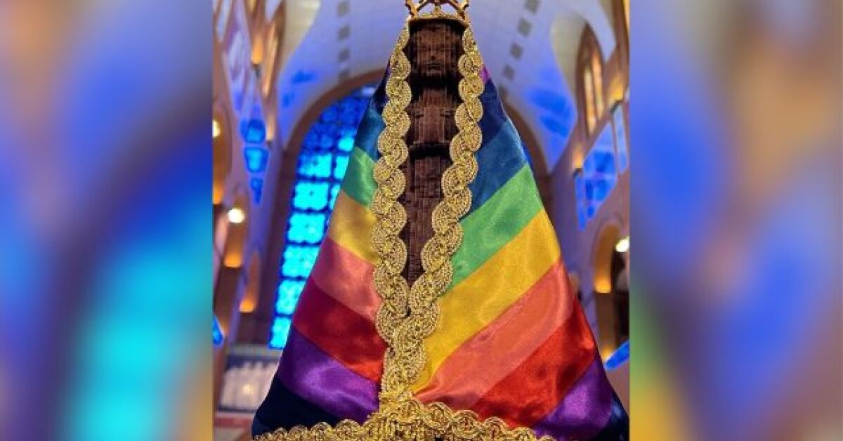 Mensagens de indignação estão tomando conta das redes sociais entre católicos que se sentiram ofendidos por uma foto em que a imagem de Nossa Senhora aparece vestida com um manto nas cores da bandeira LGBTQ+.