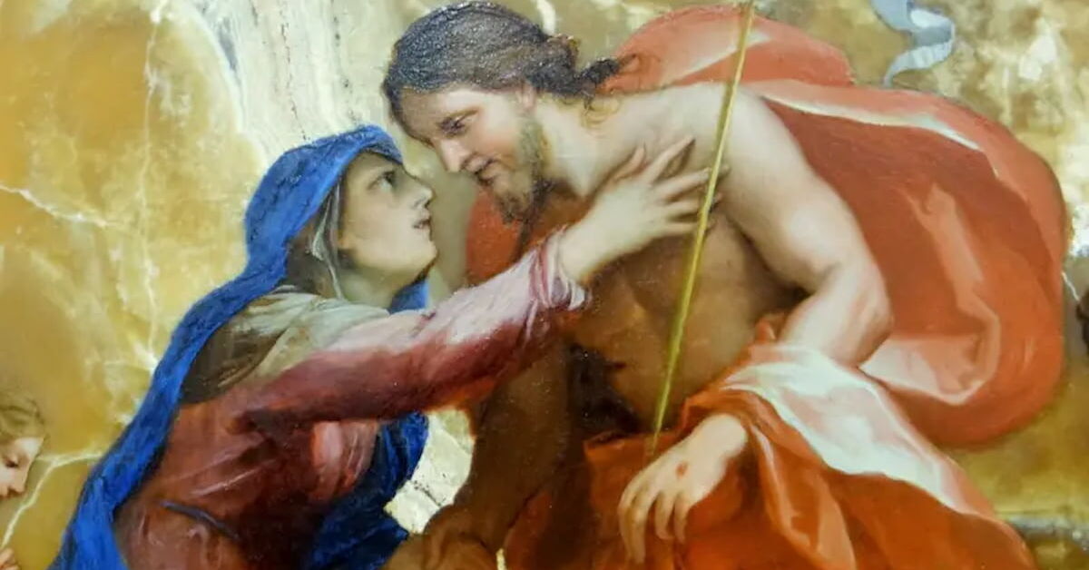 Pintura da primeira metade do século 17 mostra o encontro de Maria, a "corredentora", com Jesus. Créditos: Domínio público/BBC News