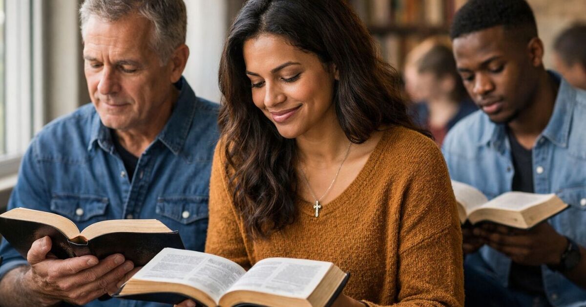 Pessoas lendo a bíblia Foto: Divulgação/IA