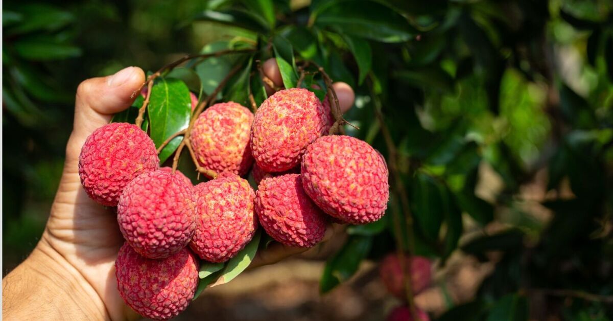 Lichias frescas colhidas no período de safra, quando a fruta atinge cor intensa e sabor mais adocicado. Foto: Freepik