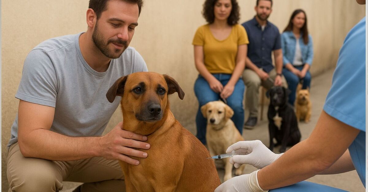 Vacinação antirrábica em animas domésticos. Foto: Reprodução/IA